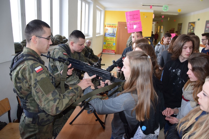 W trakcie „Dnia Otwartego” żołnierze z 34. Brygady Kawalerii Pancernej z Żagania, którzy prowadzą zajęcia z przygotowania wojskowego w Budowlance, przedstawili gimnazjalistom perspektywy pracy w tym zawodzie. Poza żołnierzami z Żagania, uroczystość uświetniła też obecność 1. Kołobrzeskiego Batalionu Zmechanizowanego i Dywizjonu Artylerii Samobieżnej w Chełmie. Wojskowi zaprezentowali sprzęt bojowy.